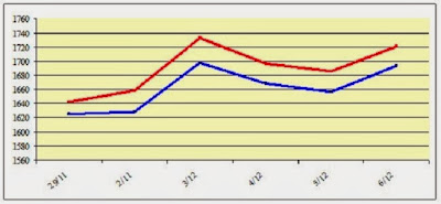 Cấu trúc giá kỳ hạn vẫn đang ở thế nghịch đảo (inverted) tức giá tháng giao ngay cao hơn tháng giao xa. Đến hết phiên giao dịch hôm qua 6-12, giá tháng 1-2014 cao hơn tháng 3-2014 là 27 đô la Mỹ và 71 đô la cao hơn tháng 5-2014 (xin xem biểu đồ với đường màu đỏ biểu thị tháng 1 và màu xanh tháng 3-2014). Với cấu trúc này, thị trường đang khuyến khích giao hàng ngay nhưng lại không ủng hộ bán hàng xa (vì giao hàng xa có giá thấp hơn). Hình như có một bàn tay vô hình nào đó đang muốn hạn chế cà phê nước ta bán ra thị trường! Cấu trúc giá như vậy đang làm trở ngại sức bán ra và vô hình trung ủng hộ chương trình tạm trữ mà chẳng cần tốn vốn cho chương trình tạm trữ này.